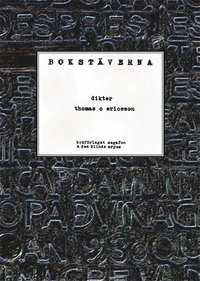 "Bokstäverna som du ristar in under huden Bokstäverna som betyder allt eller inget Bokstäverna som är din sköra tråd i livet" Thomas C Ericsson (f. 1962), är uppväxt i Vimmerby, numera bosatt i Kisa. Redaktör för tidskriften Den Blinde A...